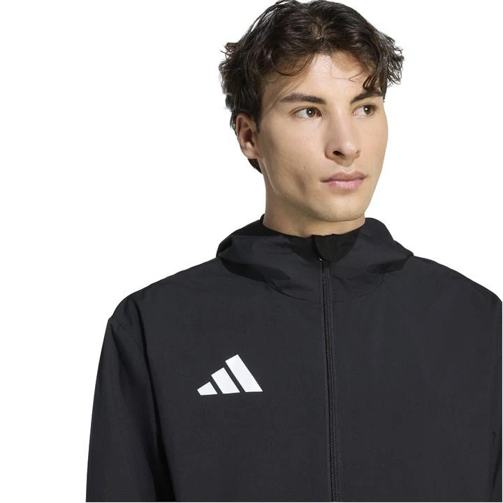No need to worry about unpredictable weather conditions, as this all-season jacket features a sturdy hood and elasticated cuffs ensuring you stay protected from the elements. The full zip means you can open up and stay cool during intense activities, while the front zip pockets guarantee your daily essentials will stay secure while on the go. Finished with the iconic adidas 3-stripe logo proudly displayed on the chest, providing instant recognition for this powerhouse sporting brand.