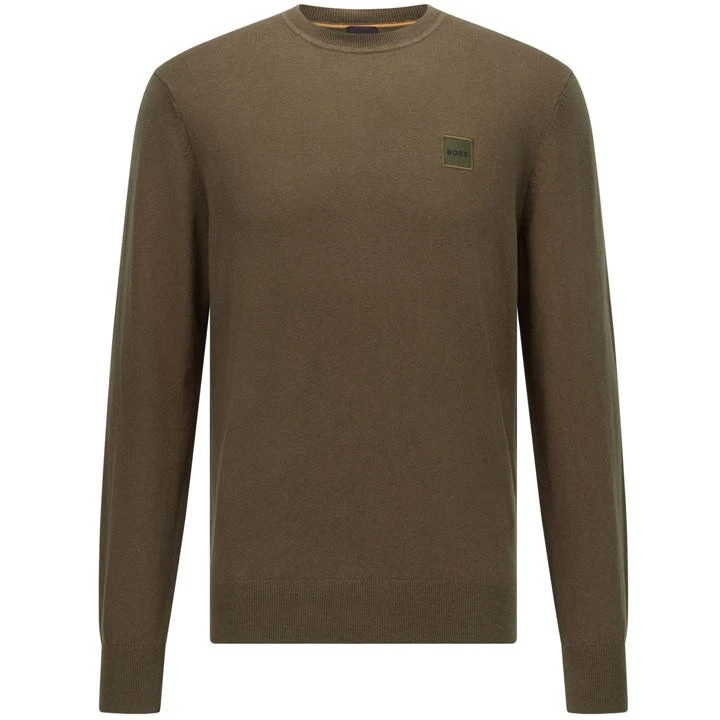 soft hand feel – visible fully fashion marks – french shoulder to the back – plain knit with woven logo badge – small tubular at collar start –