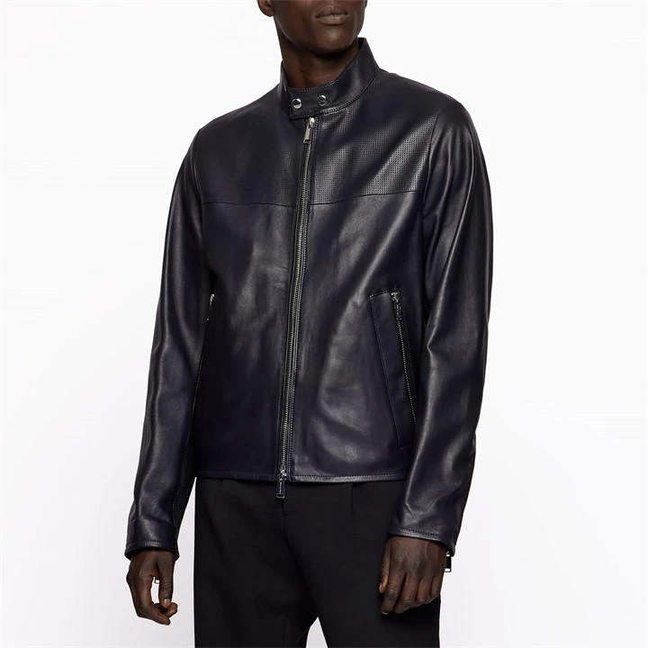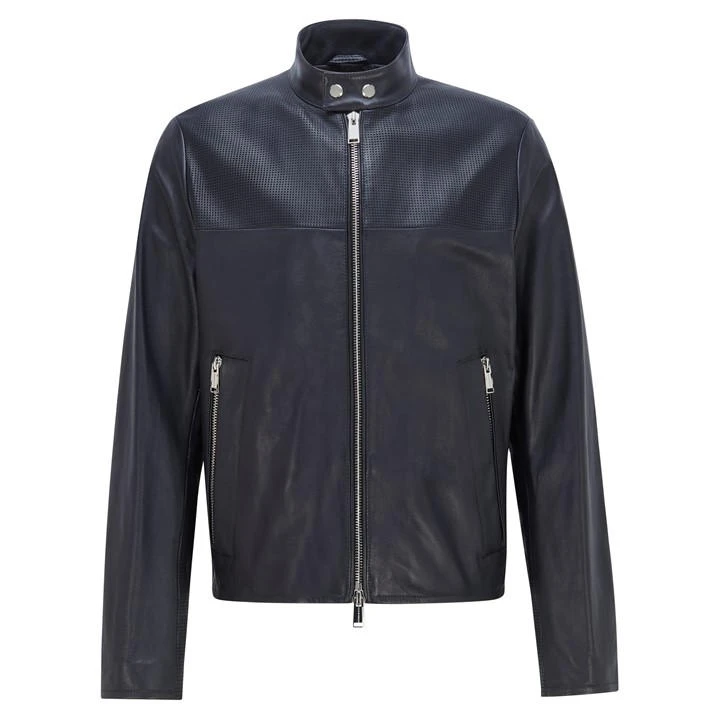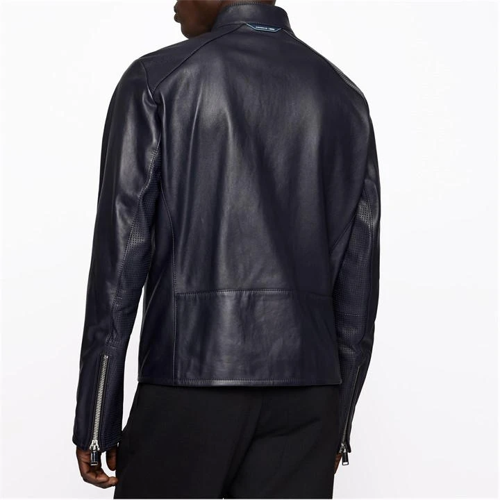 classic biker silhouette – mix of different perforation sizes and plain leather – clean rich surface of the leather skin – sleeve cuffs with zip closure – double pocket solution with chunky zips -special Porsche trimmings