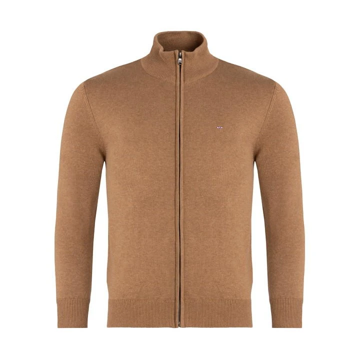 Designed in soft wool and cotton mix, this zipped cardigan will keep you nice and warm with its stand-up collar. It has a fine stocking stitch knit and features the emblematic pink bow tie logo embroidered on the chest. Wool and cotton. Regular Fit. Embroidered bow tie Eden Park logo on the chest. Ribbed trim.