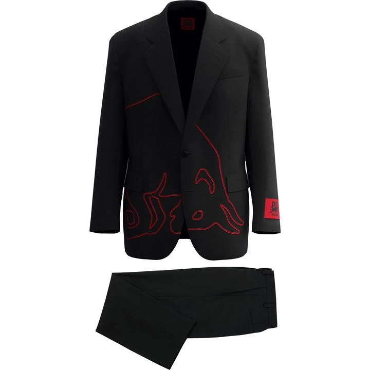 Sold as a set for a sleek polished look, the meticulously crafted blazer and tailored trousers are cut from a premium fabric, and presented in a sleek block colourway. Adorning notched lapel collars to the blazer, the single-breasted fastening is framed with flap pockets for a timeless appeal. Alongside button cuffs to the long sleeves, each detail of this tailored blazer is crafted to perfection. The accompanying trousers, designed with a secure fastening waistband, boast four slip pockets and a tailored cut for a refined fit. Elevated with a striking embroidered Bulls motif to the blazer, the signature Bull motif on the red label adds a signature touch of Hugo infused with an RB finish. Whether you’re pit side or attending the F1 Paddock Club, this Hugo x RB Suit Set is the ultimate race day look.