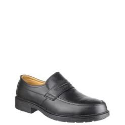 • Smart black leather safety shoe ideal for industrial office and uniform use
