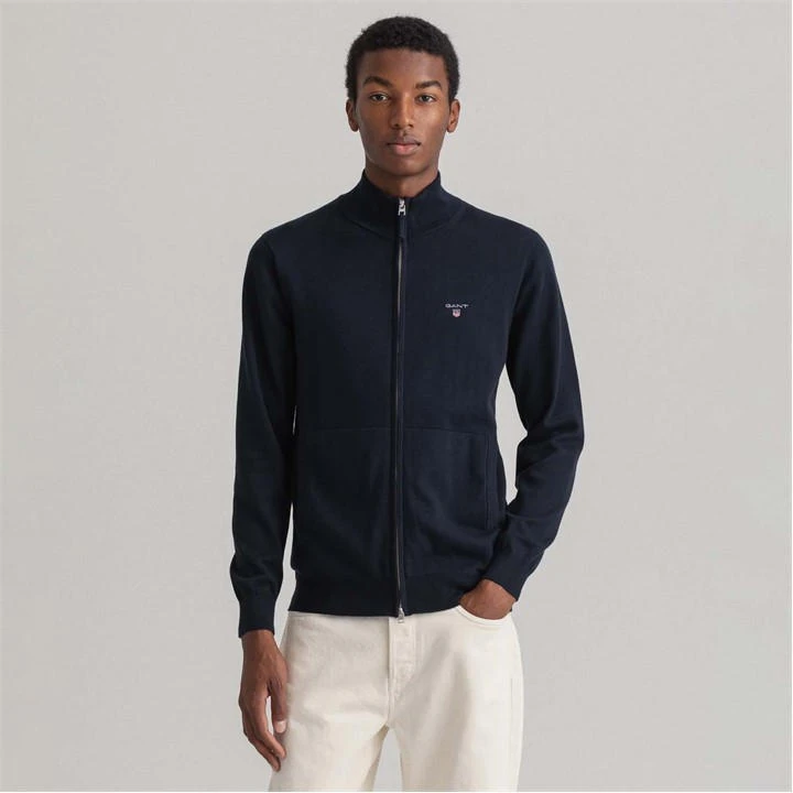 Mens Gant Classic Cotton Zipped Cardigan in blue.