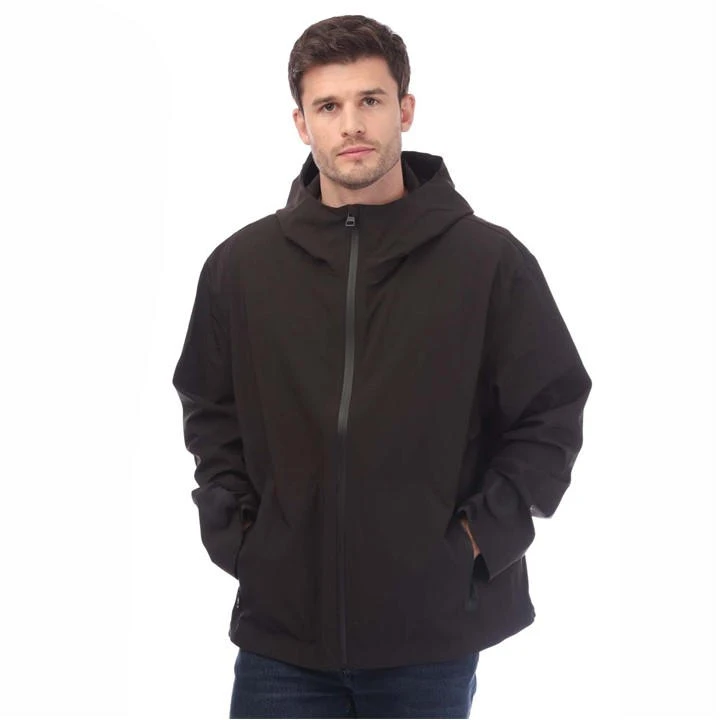 Jacket with zipper – reflective HUGO logo on the sleeves – waterproof zips – zip pockets – hood with cord stoppers – waist with tunnels & cord stoppers on both sides – velcros on wrists – HUGO tech core
