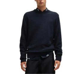 An unconventional polo-style sweater by HUGO Menswear. Featuring a zipped placket this top is blended with wool and trimmed with a stacked logo.Regular fit.
