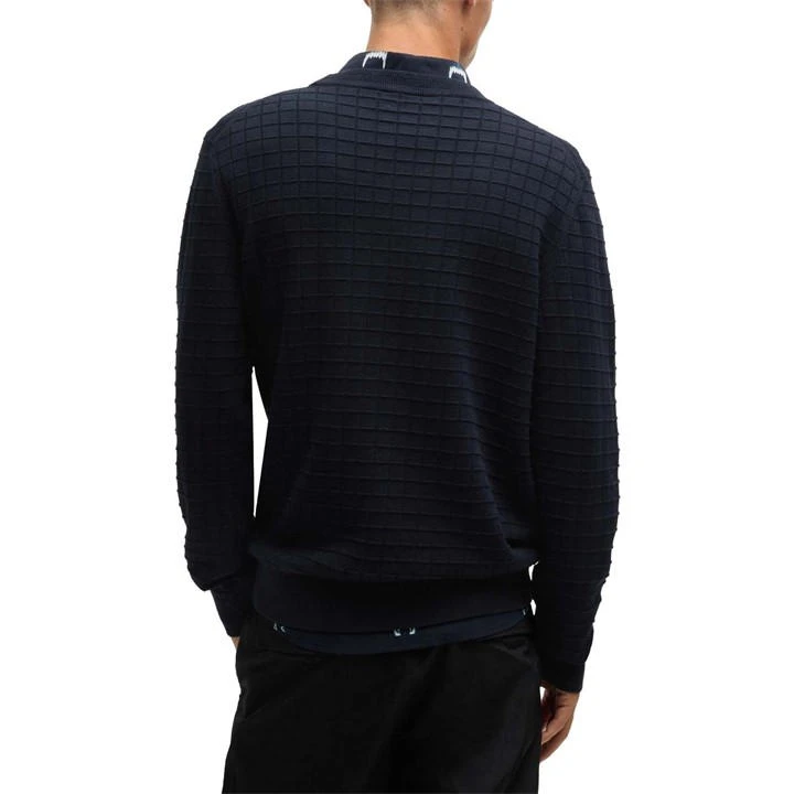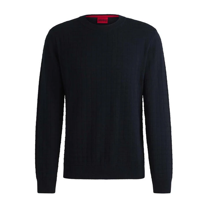 Mens Hugo Scoult Grid Pattern Regular-Fit Sweater in navy.