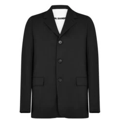 Elevate your everyday essential tailoring with the Jil Sander Single Breasted Blazer Jacket. Cut in a single breasted silhouette with a three button fastening that sits off centre for a contemporary look, this blazer has been crafted from a pure cotton fabrication boasting a crisp black colourway. Complete with a notched lapel collar and shoulder pads falling into long sleeves, this formal layering piece offers two side flap pockets for a classic finish. Pair with jeans for a casual styling or straight leg trousers and loafers for a classic smart attire.