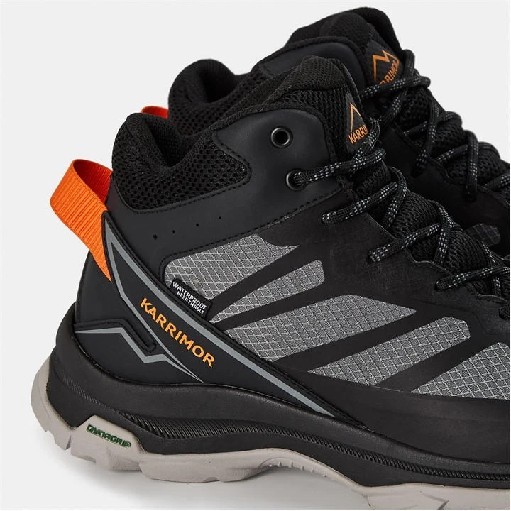 The Karrimor Pennine Mens Walking Boots are perfect for your next hike, crafted with a shaped ankle collar for extra support. The large pull loop helps with easy on and off and the classic lace fastening provides a secure and comfortable fit. Be protected from the elements with the waterproof lining. Ortholite insole provides under foot comfort for them long or short walks. A moulded outsole with Dynagrip provides fantastic traction on a wide range of surfaces. Finished off with a layered panel design for a more modern look.