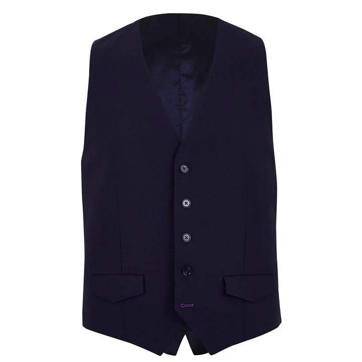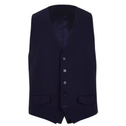 Create a sophisticated and classic formal look with the Kilburn Waistcoat by Without Prejudice, crafted from a wool blend for a more comfortable design. This waistcoat has been shaped to a slim fit for a flattering silhouette, the waistcoat features a five button front, slanted welt front pockets with flap closure, and a sleek contrast reverse complete with a handy buckle adjuster. Combine with the matching jacket and trousers to complete a suave three piece ensemble.
