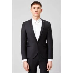 Put a twisted take on your black-tie look and opt for the Kingdon black dinner suit. Cut to our signature skinny fit, it’s a modern take on the classic tuxedo but still screams ‘big event energy’. This jacket features a peak lapel, contrast satin fabric on the lapels & pockets, straight welt pockets, double darts and 5 kissing buttons including the signature skull button. Make sure you pair it with the matching skinny fit tuxedo trousers for the ultimate formal look.
