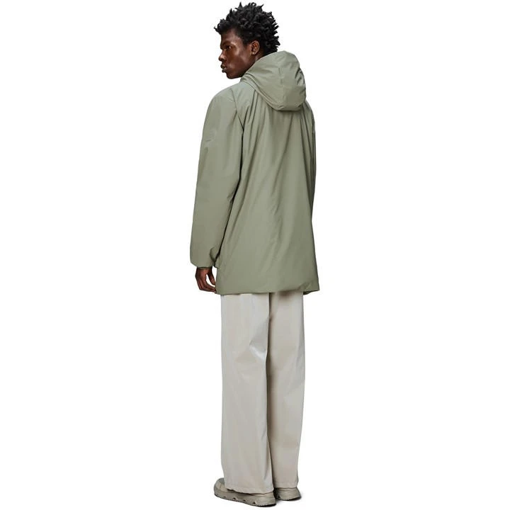 The waterproof jacket is cut from Rains’ signature PU fabric with welded seams. The finish is lightweight with a smooth feel.