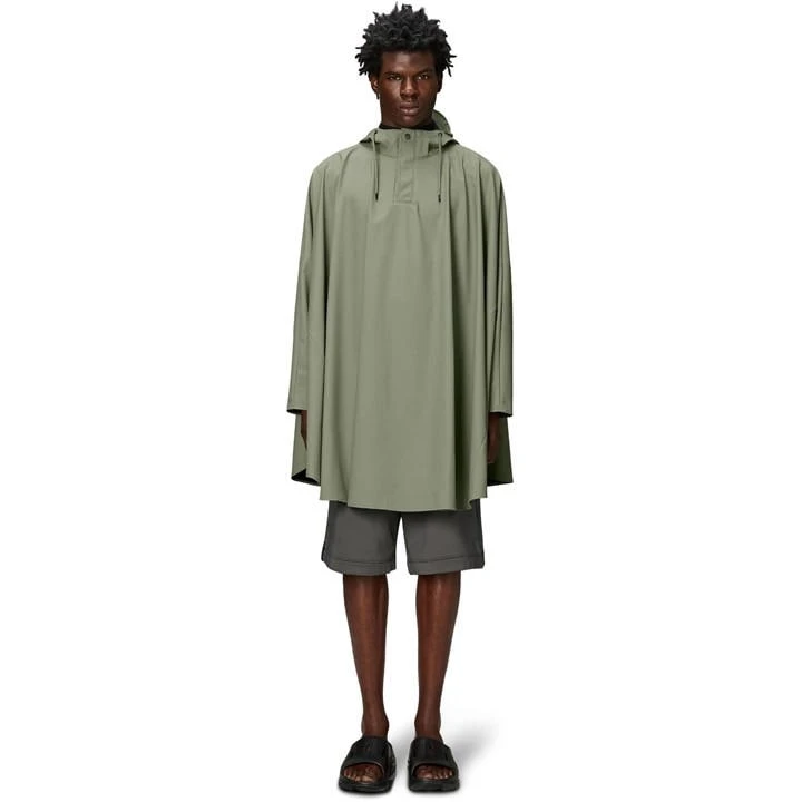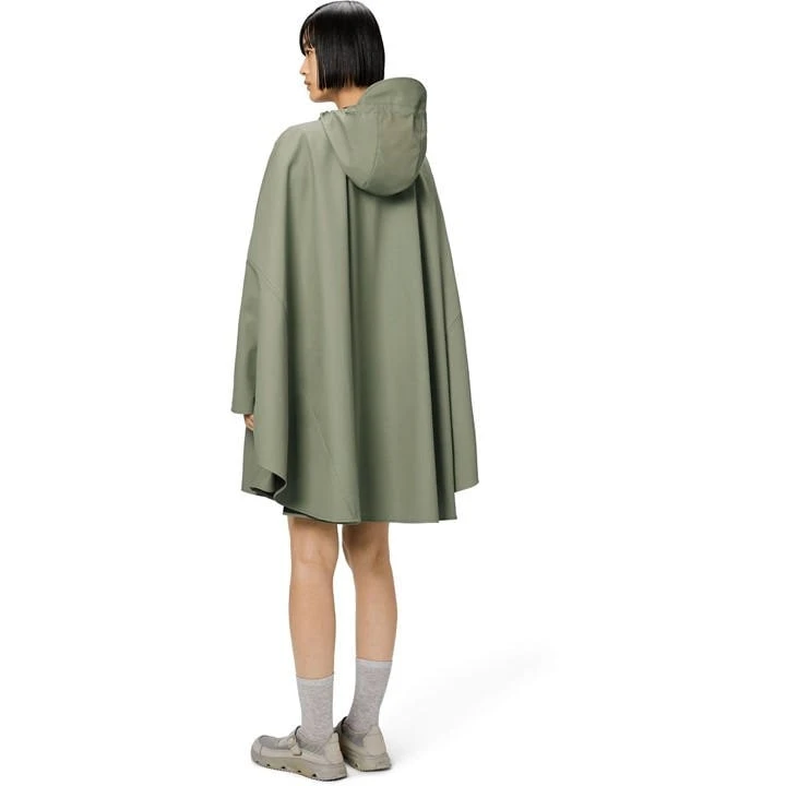 This roomy cape with an elegant drape is cut from Rains’ signature PU fabric and features welded seams. The finish is lightweight with a slightly structured feel.