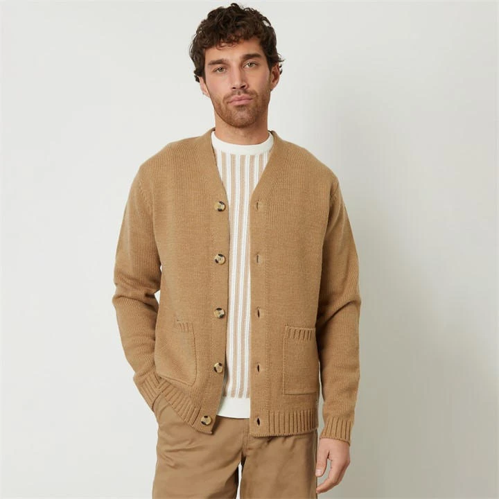 Be comfortable in style in this button down, knitted cardigan from Threadbare. With a V-neckline, ribbed cuffs and hem, this button up cardigan is the perfect addition to your wardrobe. Complete with branded metal tab above the hem, five mock horn buttons and two patch pockets. Made from a super-soft yarn with wool, this style is ideal for layering. Pair with dark denim jeans, a white t-shirt and boots for a stylish, casual look.