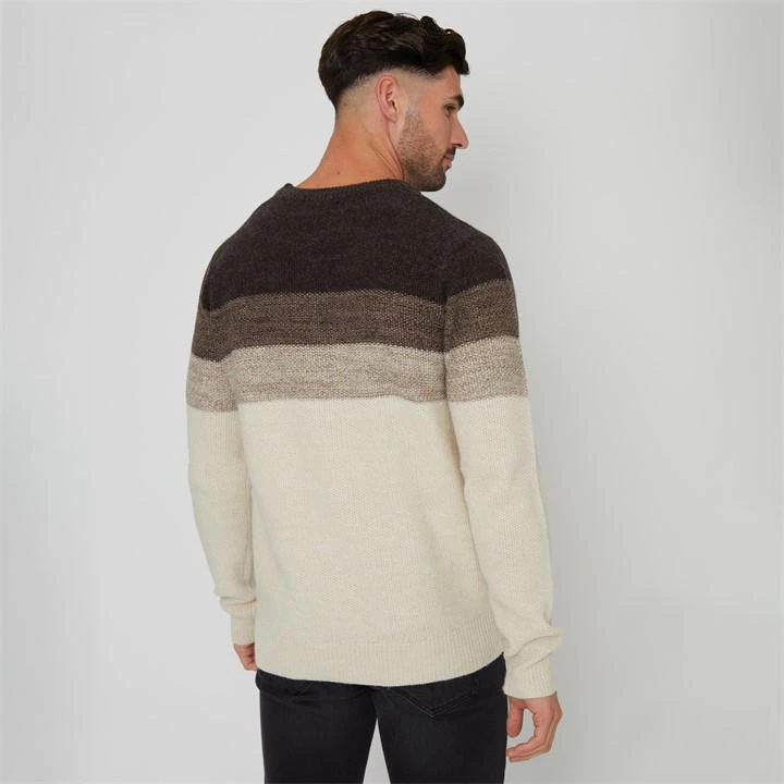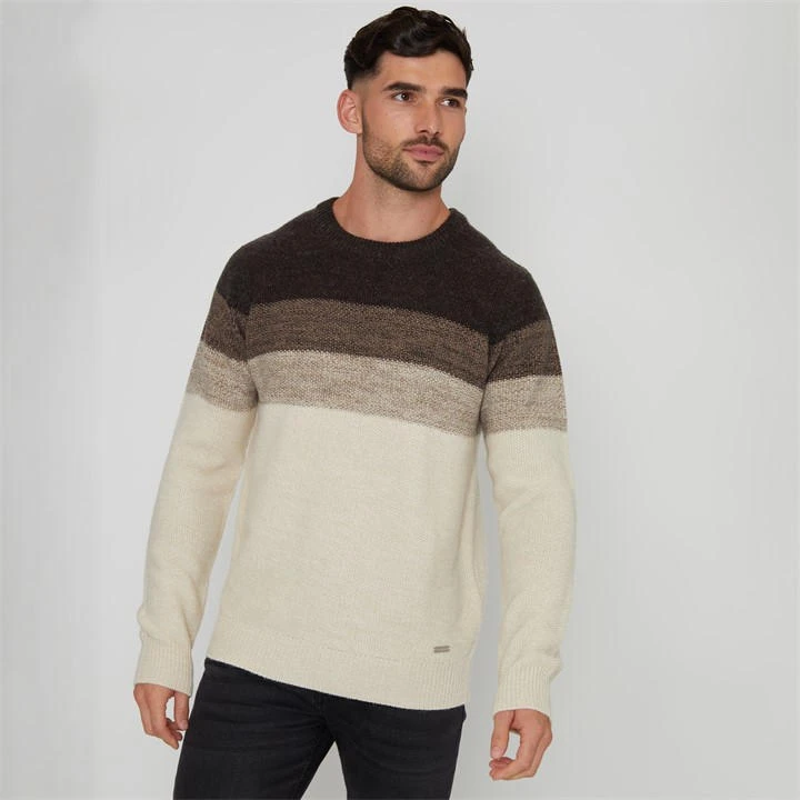 Refresh your winter essentials with this ombr¿ striped knitted jumper from Threadbare. Designed with an ombr¿ colour gradient from the crew neckline to the hem, this knitted jumper has ribbed cuffs and hem for comfort. Made from a soft yarn with wool for a cosy addition to your wardrobe and finished with a metal Threadbare tab for coveted brand recognition. Pair with jeans and trainers for casual styles or add to joggers for a comfy at-home outfit.